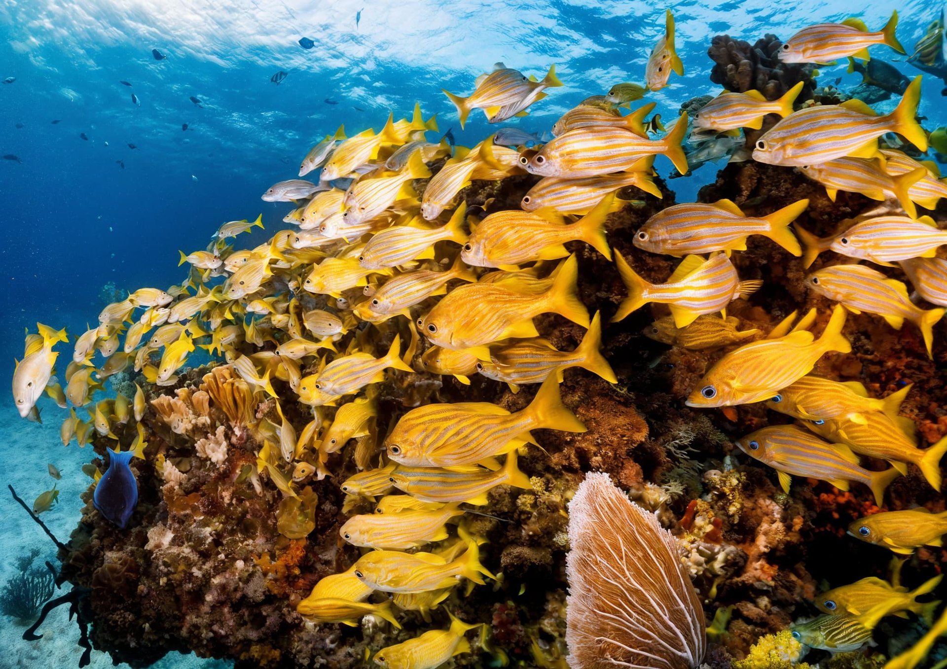 Sumérgete en jardines de coral y arte bajo el mar.