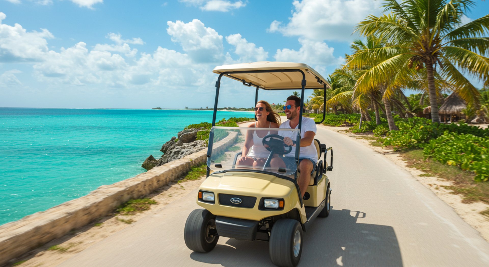 La mejor forma de recorrer Isla Mujeres es a tu propio ritmo. Renta un carrito de golf para 4 o 6 personas por día (9am-5pm) o por 24 horas. Incluye gasolina y seguro.